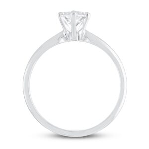 This stunning solitaire engagement ring is a beautiful way to start the rest of your lives together. The ring has a striking and classic pear-shaped diamond that sits beautifully on the gorgeous 14K white gold band. The ring has a total diamond weight of 1 carat.
