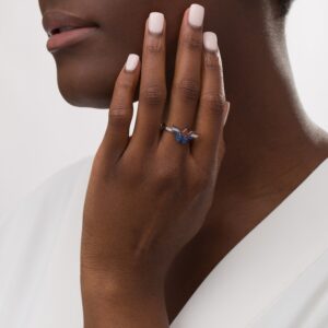 Garnet and Blue Sapphire Tiara Ring in 10K Gold