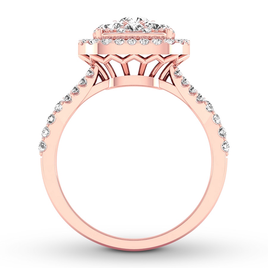 For an everlasting love, never-ending sparkle. Awash in round diamonds, this extraordinary engagement ring is crafted of 14K rose gold. The ring has a total diamond weight of 3/4 carat.